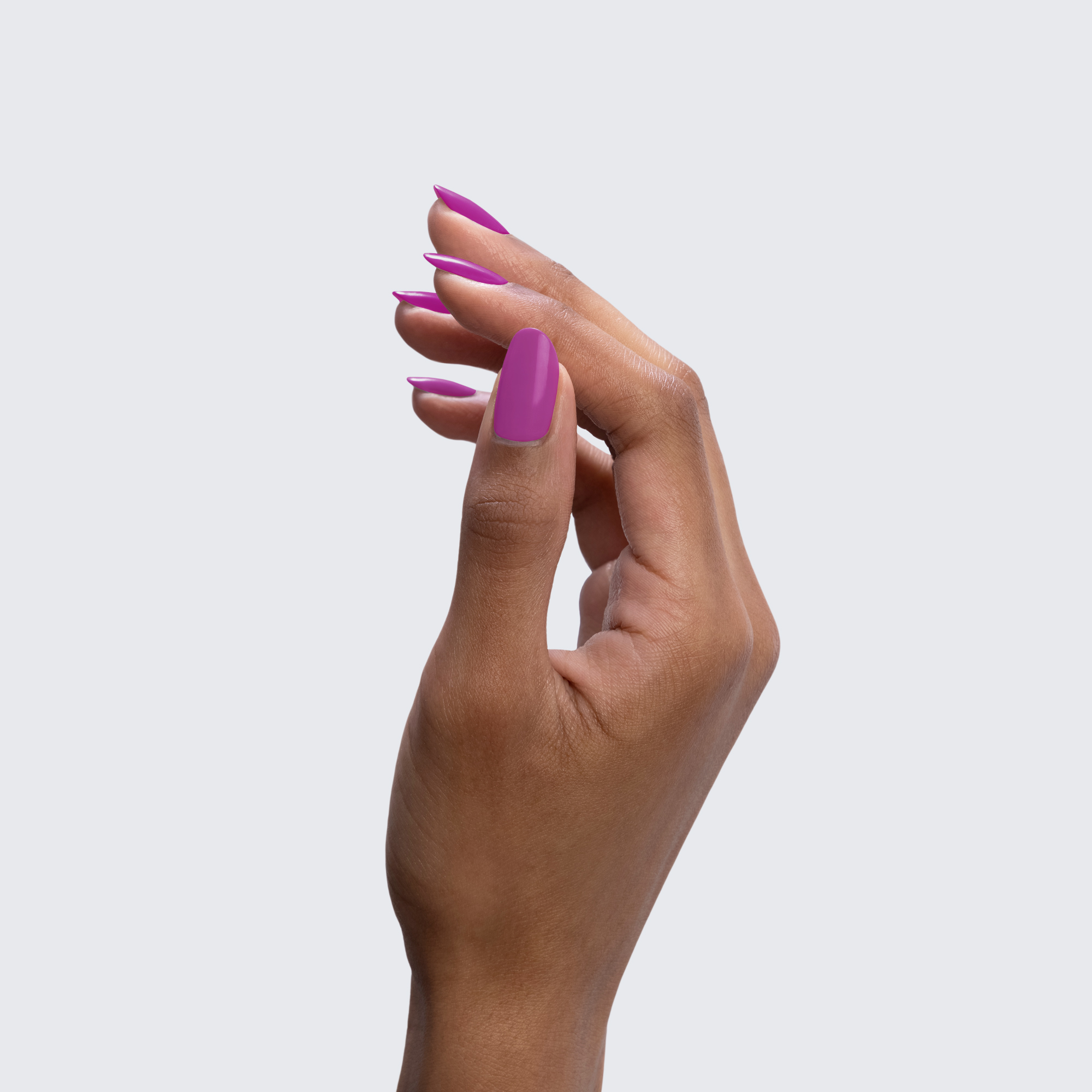 Neon purple. Light. Opaque. Cool undertone. Semi-gloss.